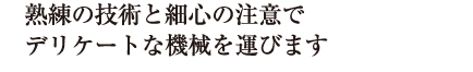 半導体製造装置や産業用ロボットなど、わずかな埃やショックにもダメージを受けやすいデリケートな精密機械の輸送・搬入には、細心の注意が必要です。熟練の技術を持った技術者やベテランドライバーが、特殊仕様車(エアサス・パワーゲート・空調装備)で輸送を行いますので、大切な機械を安心して運ぶことができます。