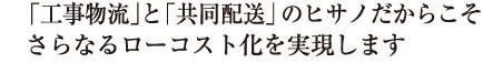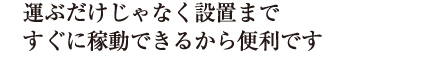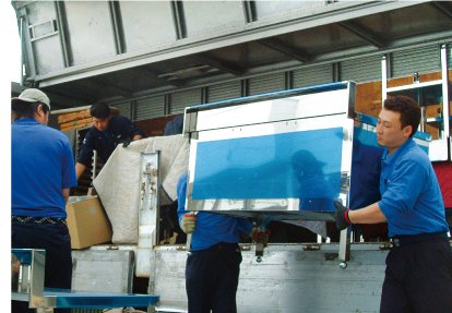 精密機械や厨房機器の輸送だけでなく、お客さまの要望に応じて組み立てや設置工事まで行う「工事物流」を推進しています。商品をユーザーがすぐに使える状態にまでセッティングしますので、設置時間のロスや労力を省き、経費の大幅なコストダウンにつながります。